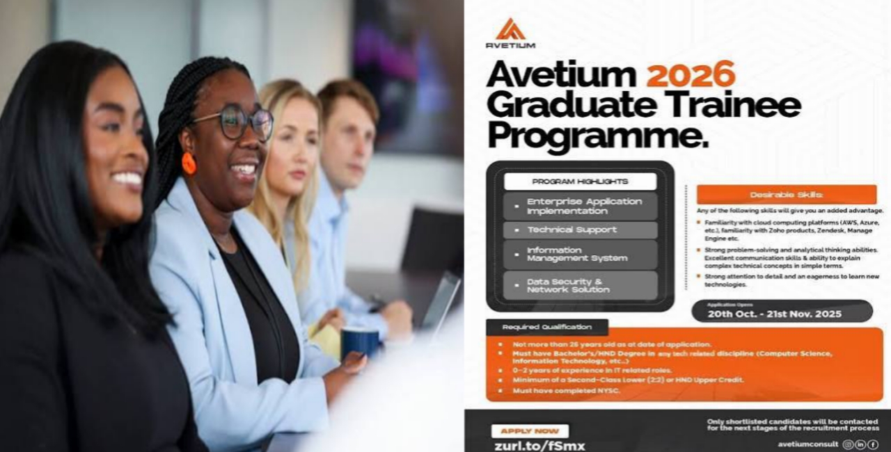 Apply Avetium Graduate Trainee Programme Are a recent graduate eager to learn, grow, and make a meaningful impact? Avetium invites applications from passionate and ambitious young Nigerians to apply for the Avetium Graduate Trainee Programme 2025, its an exciting opportunity designed to nurture fresh young Nigerian graduates into future industry leaders. The Graduate Trainee Programme … Read more