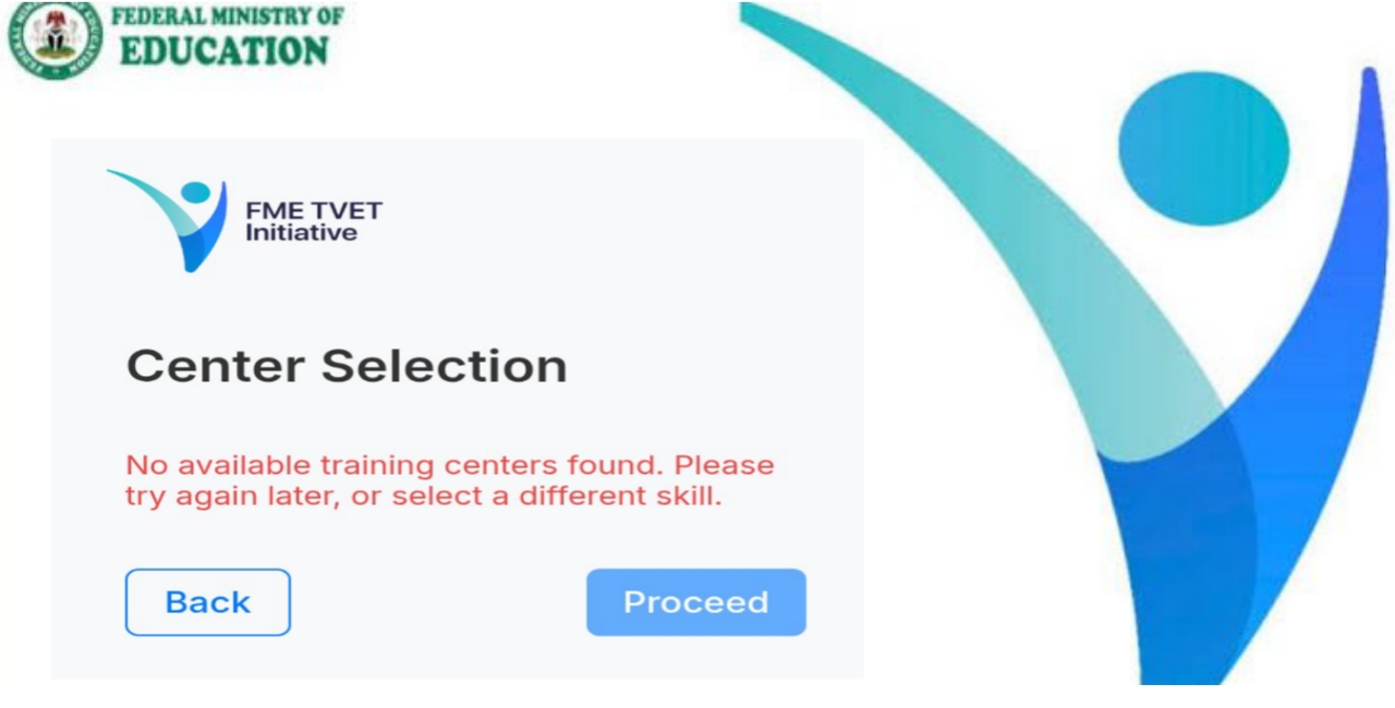 Applicants may sometimes see a message indicating that no training centre is available for their selected skill. This because of the following reasons;